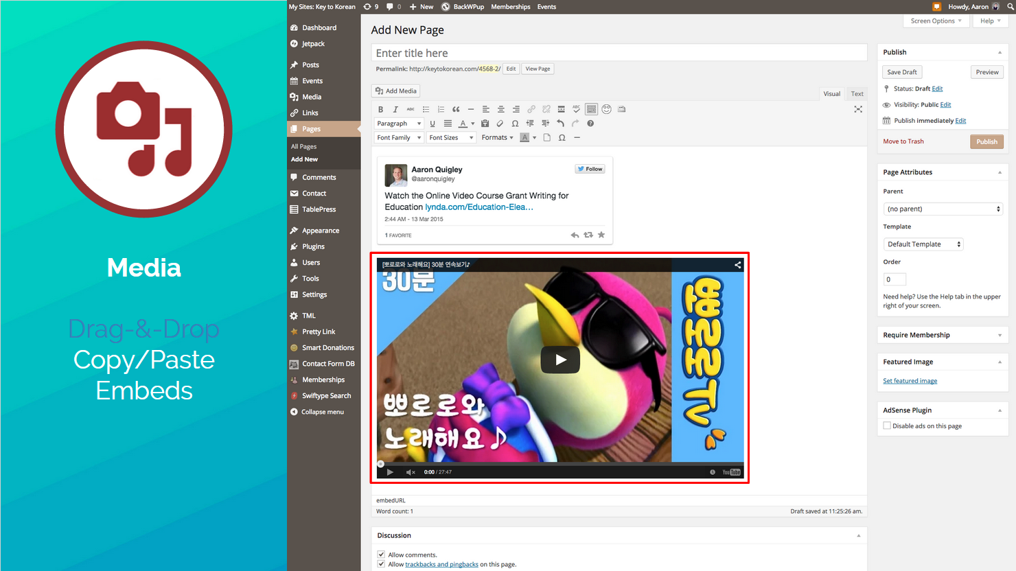 - You can Copy-Paste URLs from popular websites like YouTube and Twitter to get immediate, automatic embeds of those videos and tweets (among other things). No more copying over embed codes!