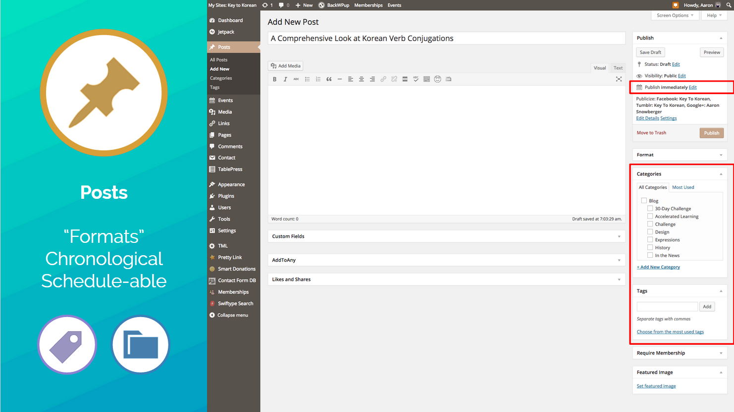 With Tags, I usually add the keywords for the lesson subject – such as a grammar point we’re studying or the key concepts to understand.