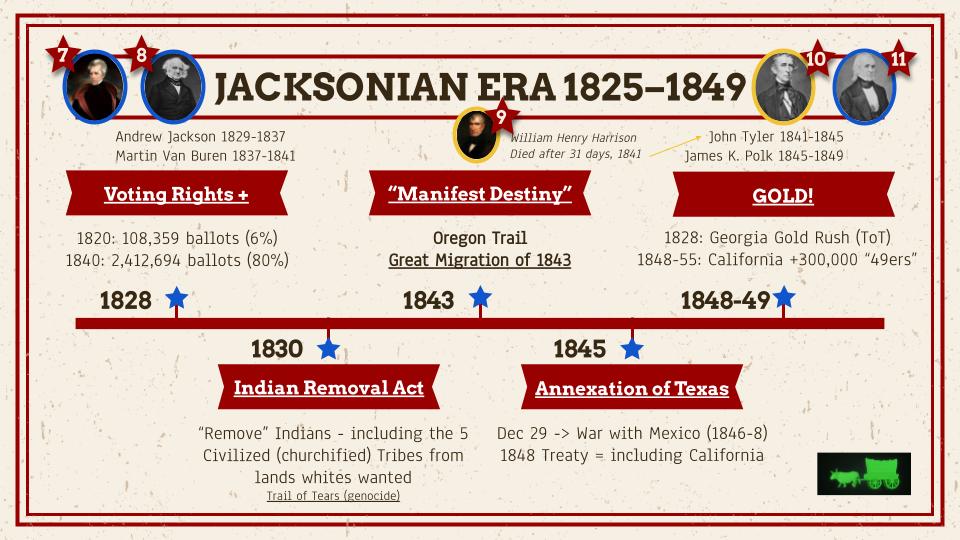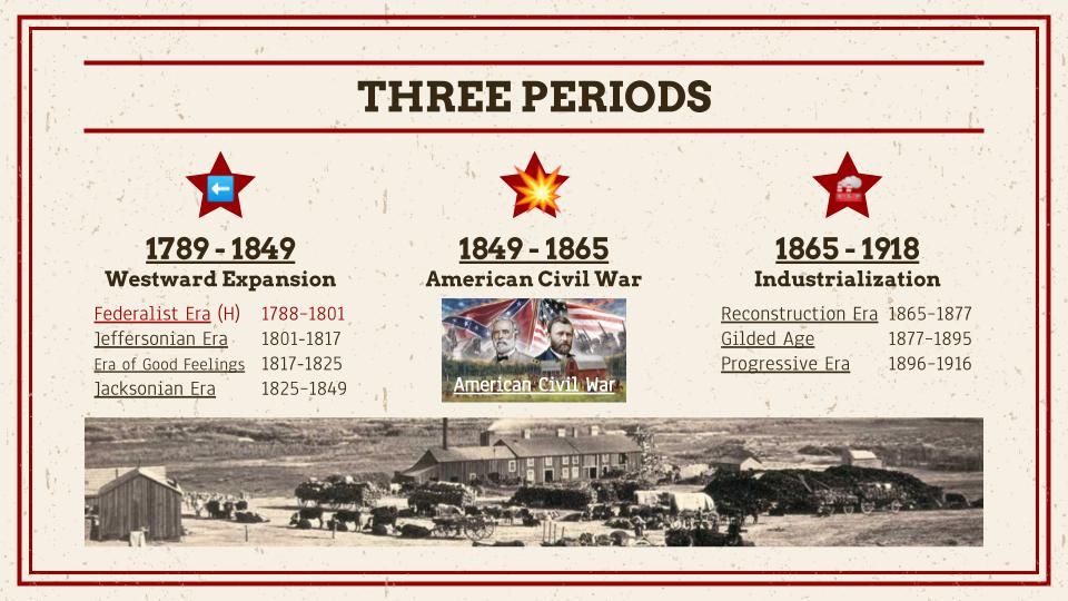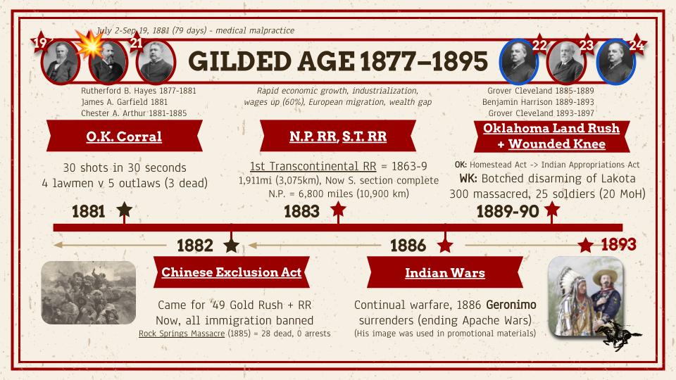 This section of the PPT focuses on the historic Old West. It is broken into three major sections and a total of eight subsections. Each subsection includes between five to eight major events that defined the era. It covers nearly 50 total events.