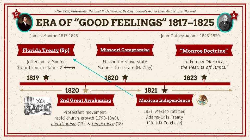 The period is marked by downplayed partisan affiliations (particularly on the part of President Monroe), the collapse of the Federalist party, and a collective sense of national pride and purpose – with a desire for national unity – following the War of 1812.