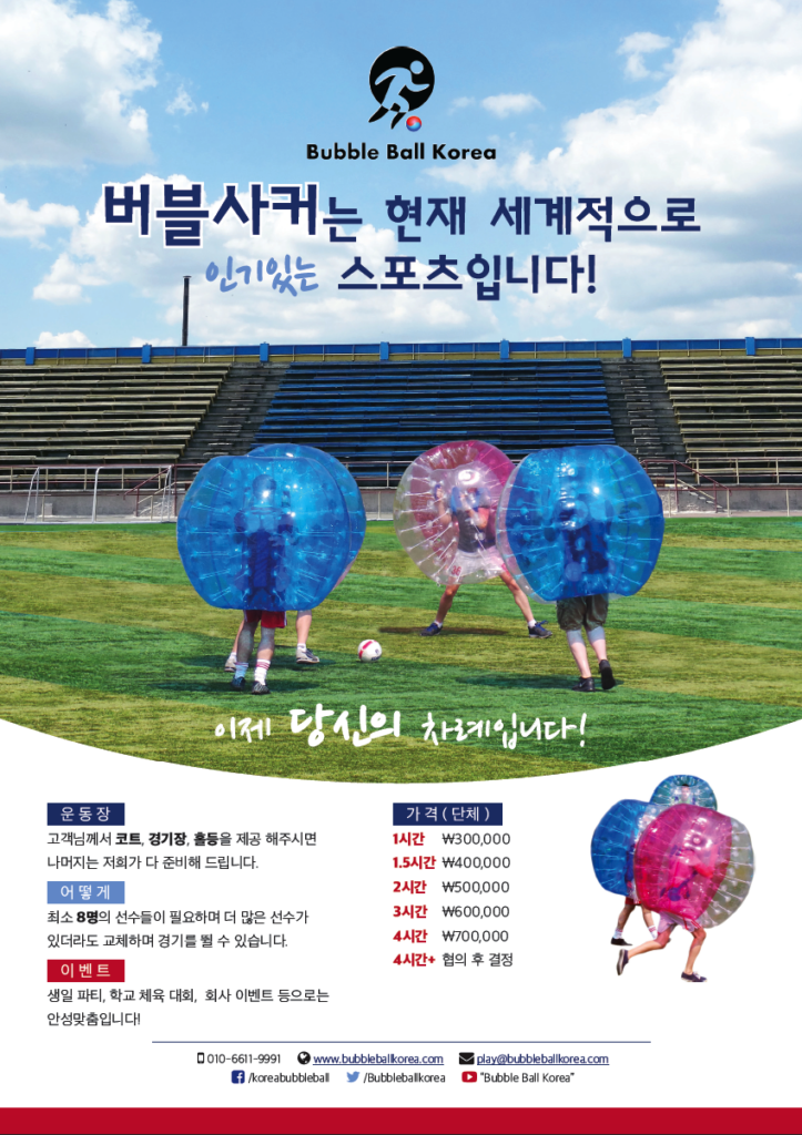 After completing the Bubble Ball Korea website, Nathan’s business partner Steve contacted me about creating some promotional flyers for them to begin advertising with.