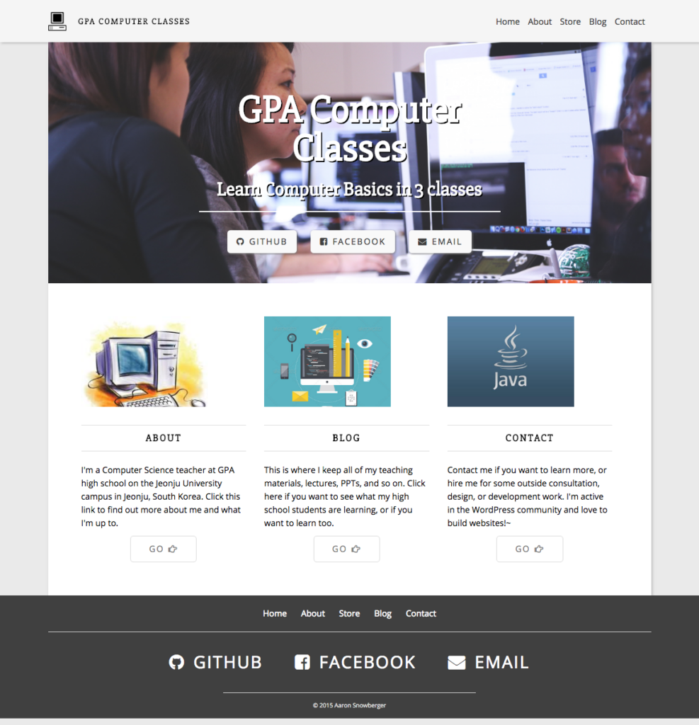 I’ve taught Web Programming (Computer B) at GPA from August 2013 – December 2015 (5 semesters). Through each progression of the class, we’ve studied a number of different concepts and I’ve introduced the students to many components of modern web design and programming: