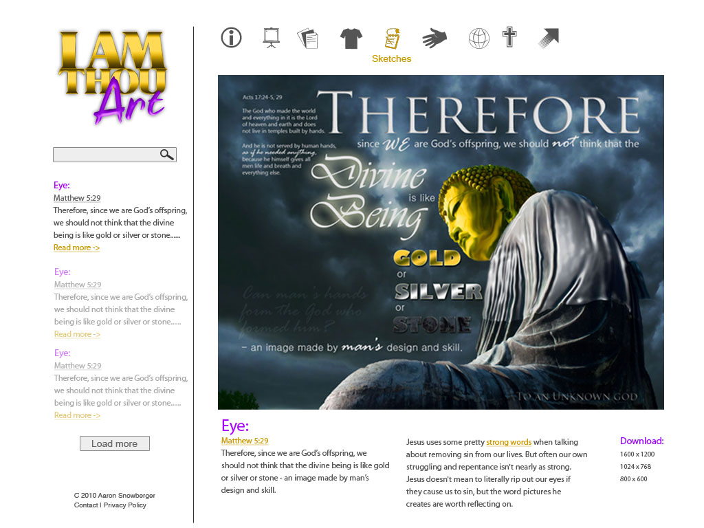 I’d already been creating some designs based on Bible passages or sermons in order to up my Photoshop and Illustrator skills for some time, so after creating the I AM Thou Art Logo, I set about getting a website up to maintain my growing collection of art.