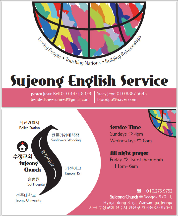 After noticing my work on the One Accord designs, the Sujeong church pastor contacted me about creating some business cards for his church.
