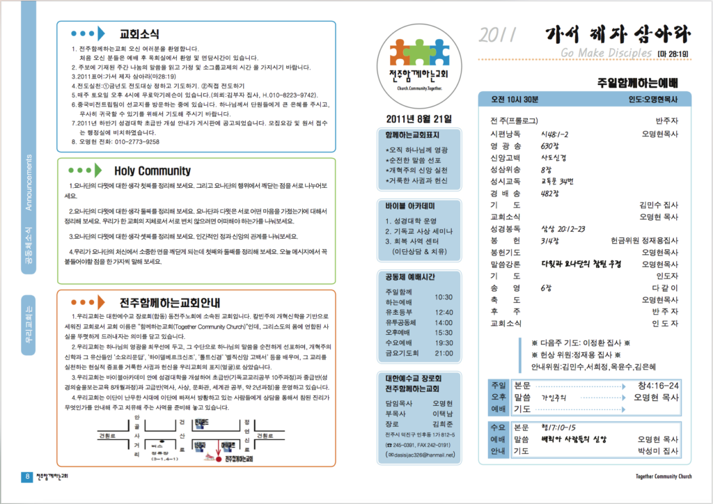 I was initially given a handful of sample Korean church bulletins the pastor liked for inspiration for design like the one seen below: