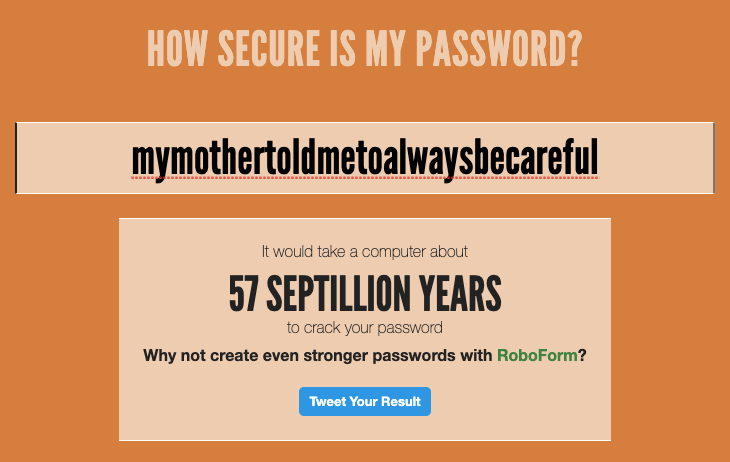 It’s also a GREAT way to stay safe on the Internet. By using a password or passphrase that includes symbols or numbers in place of similar-looking letters, you can create a password that is relatively easy to remember but hard to hack.